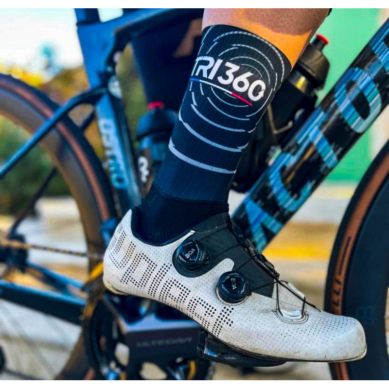 Les chaussettes Aéro personnalisables MAKO sont conçues pour offrir performance et confort aux athlètes, que ce soit pour le cyclisme ou la course à pied. Leur tige aéro sublimée assure un ajustement parfait et une respirabilité optimale, tandis que le pied renforcé en coton apporte durabilité, confort et absorption des impacts. Alliant technicité et style, ces chaussettes offrent un maintien précis et une protection adaptée aux efforts intenses, pour accompagner les sportifs dans toutes leurs performances.
