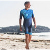 Développée pour répondre aux exigences du triathlon longue distance, cette trifonction haut de gamme personnalisable avec manches allie technicité, confort et performance. Sa conception repose sur une sélection rigoureuse de matériaux innovants : un tissu mesh ultra respirant sur les côtés pour une ventilation optimale, un tissu aérodynamique traité hydrophile et Coldblack® sur les épaules et le dos pour une meilleure pénétration dans l’air et une protection accrue contre les UV, et un tissu léger et respirant à l’avant pour réguler efficacement la température corporelle. Le bas de la trifonction offre un excellent maintien musculaire et un confort durable grâce à un textile performant et un powerband en finition cuisses.