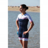 Développée pour répondre aux exigences du triathlon longue distance, cette trifonction haut de gamme personnalisable avec manches allie technicité, confort et performance. Sa conception repose sur une sélection rigoureuse de matériaux innovants : un tissu mesh ultra respirant sur les côtés pour une ventilation optimale, un tissu aérodynamique traité hydrophile et Coldblack® sur les épaules et le dos pour une meilleure pénétration dans l’air et une protection accrue contre les UV, et un tissu léger et respirant à l’avant pour réguler efficacement la température corporelle. Le bas de la trifonction offre un excellent maintien musculaire et un confort durable grâce à un textile performant et un powerband en finition cuisses.